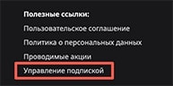 2) Откройте личный кабинет сервиса и перейдите в нижнюю часть сайта. Там нажмите на ссылку "Управление подпиской".