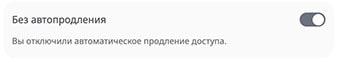 Если вы ранее обращались в поддержку сервиса с просьбой отмены подписки, возможно, автопродление вашего доступа уже отключено, и сейчас ползунок отмены продления уже активирован. Это значит, что подписка больше не будет продлеваться в дальнейшем.