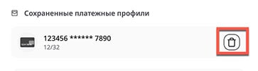 4) При желании вы можете удалить привязанную банковскую карту. Сделать это можно нажав на иконку корзины 🗑.