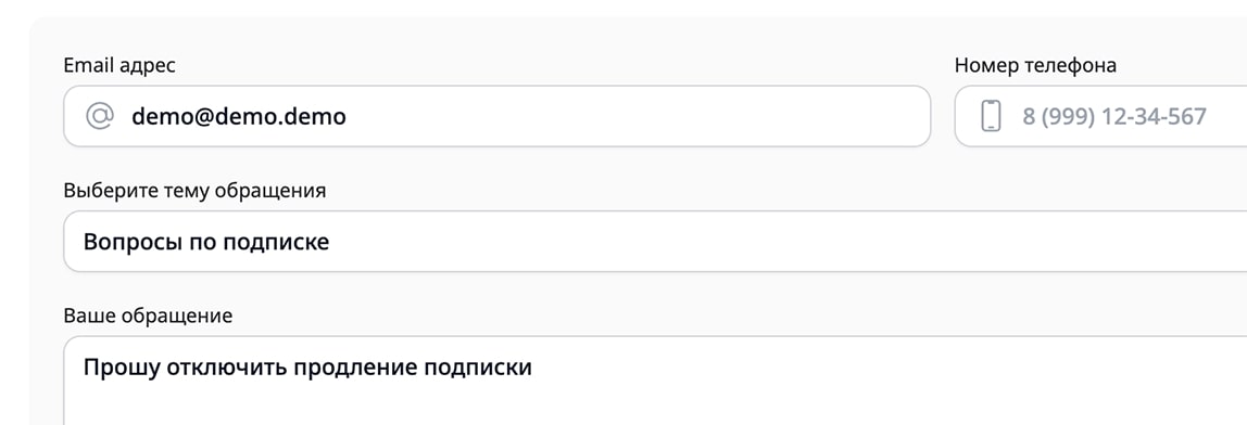 - В поле обращения напишите "Прошу отключить продление подписки".